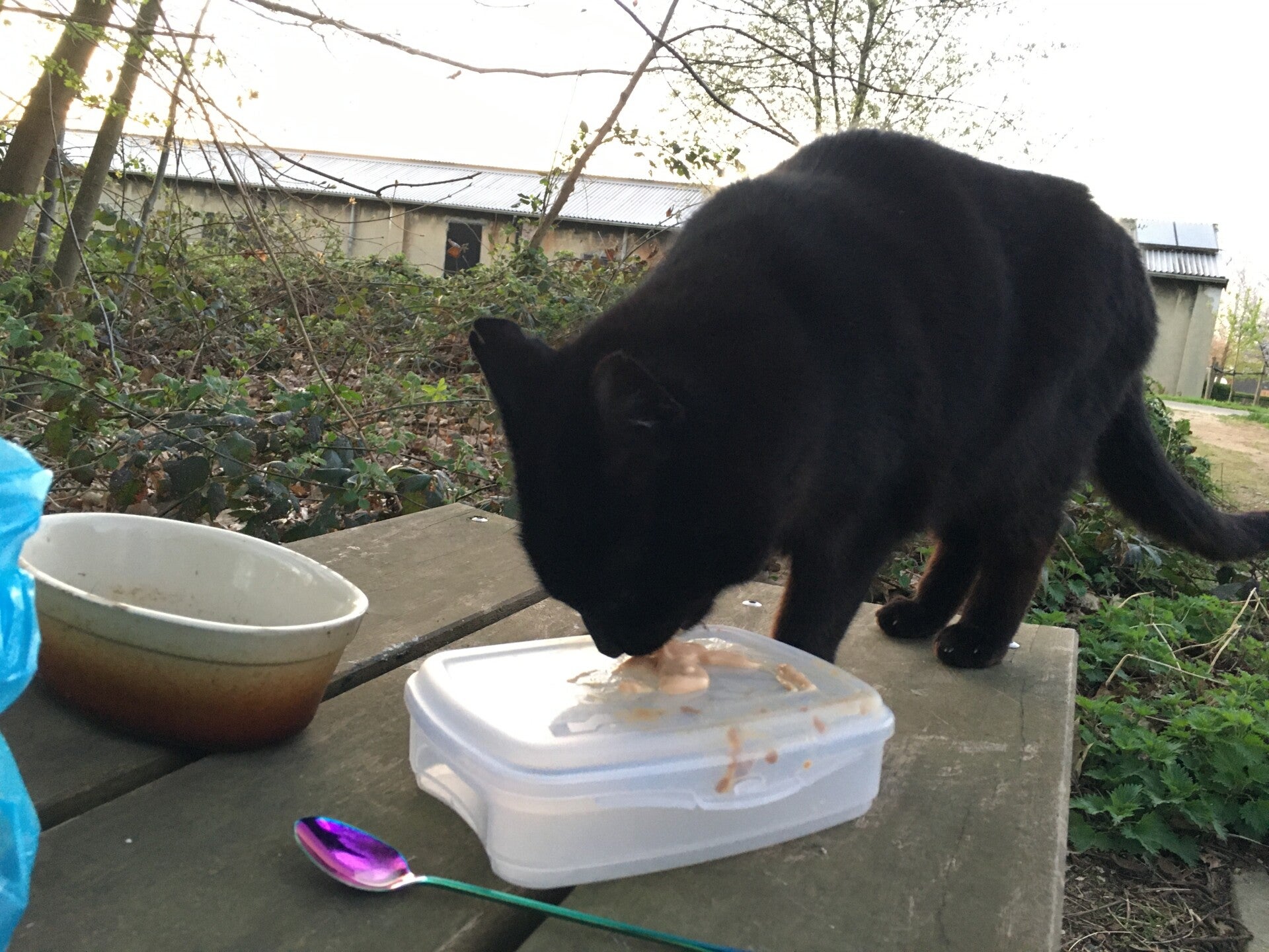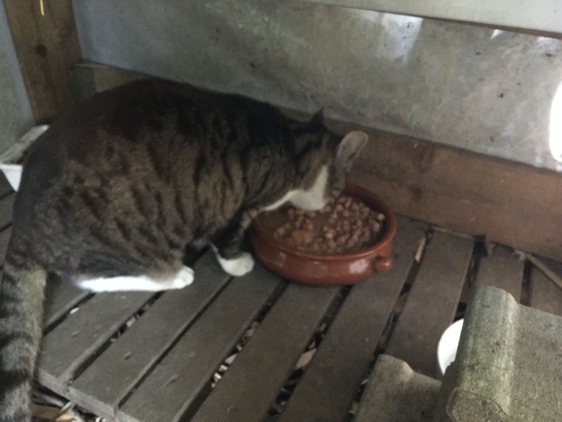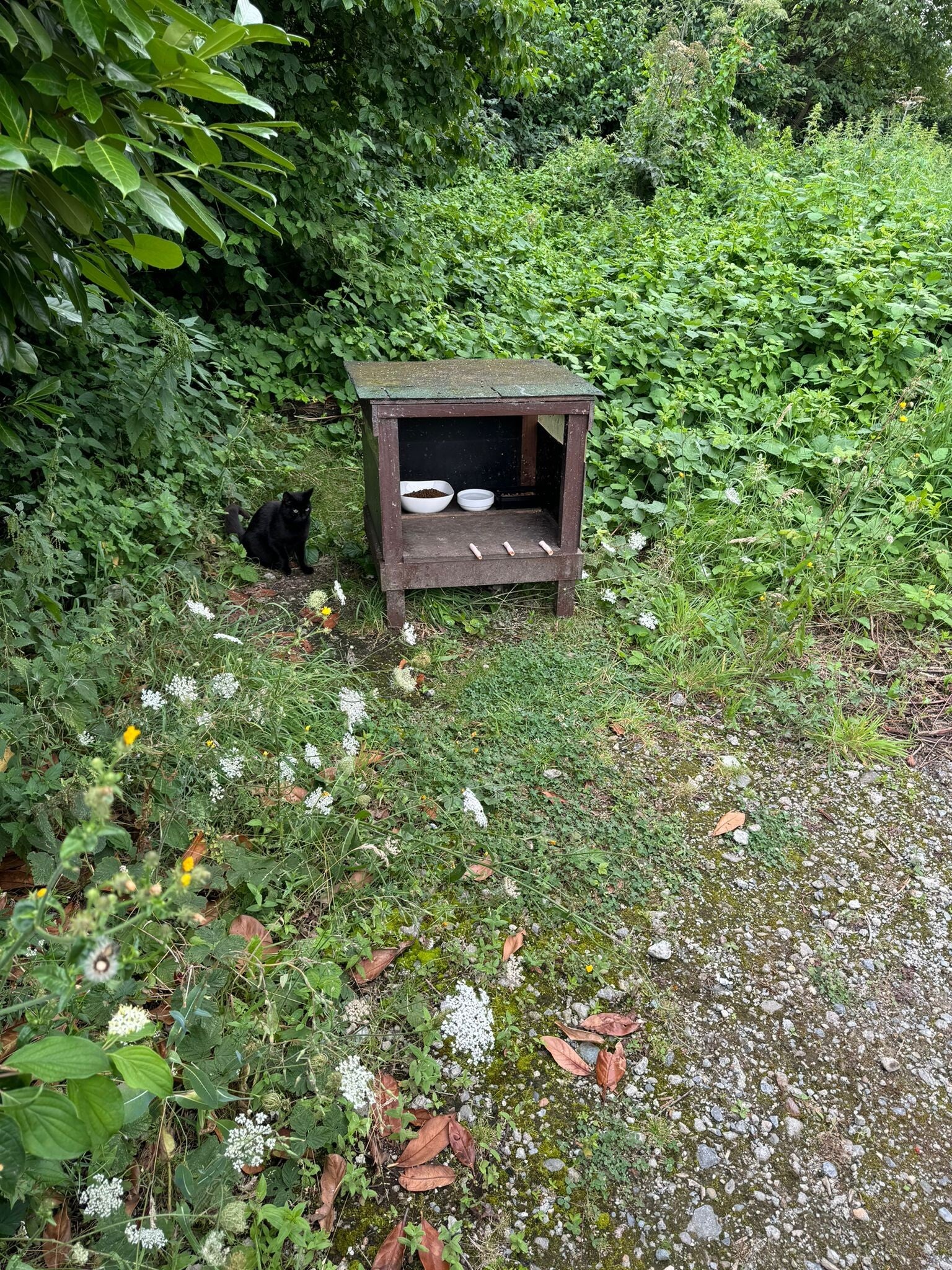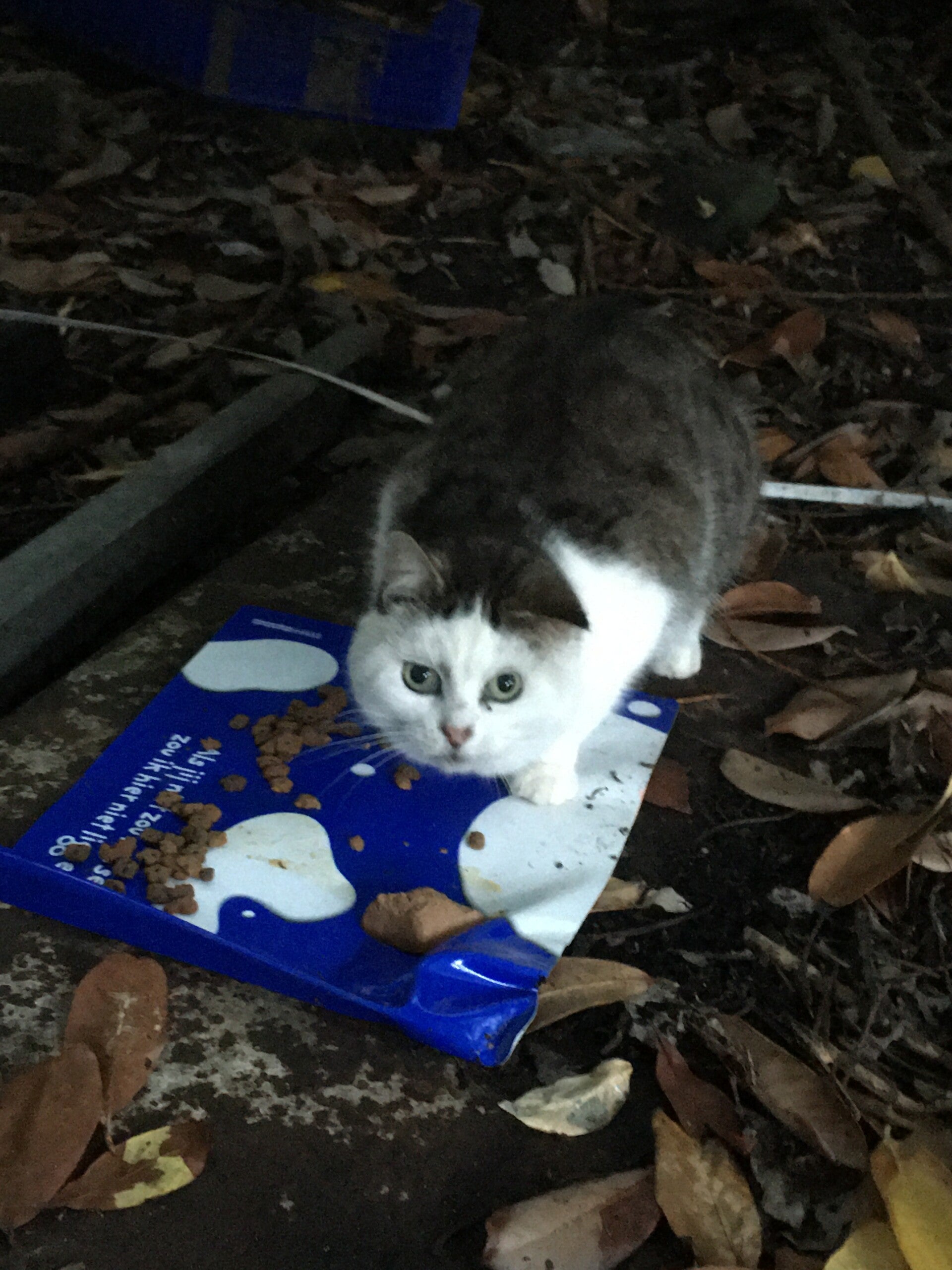 Op vaste voederplaatsen krijgen onze katjes dagelijks eten.