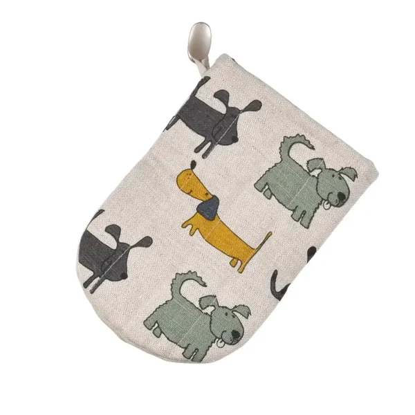 Mini kleurrijke halflinnen ovenwanten met aangenaaide lus en niet-geweven stof aan de binnenkant waardoor hij geschikt is voor het hanteren van hete gerechten.