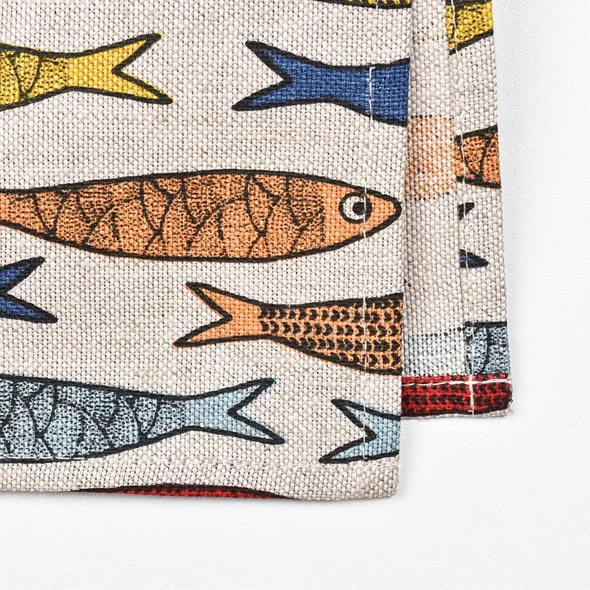 Linnen keukenhanddoek met een handvat om gemakkelijk op te hangen. Deze kleurrijke designhanddoek absorbeert water perfect.