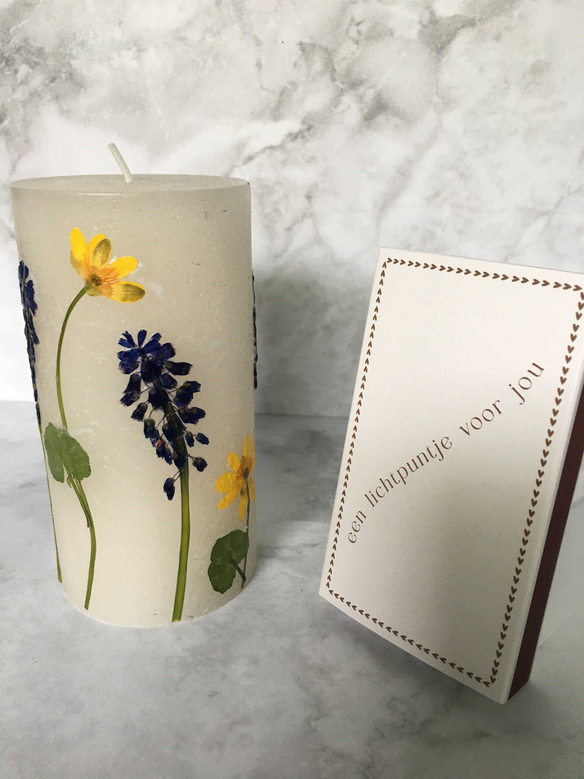 Botanische pilaarkaars met ECHTE geperste bloemen en luciferdoosje van Zusss