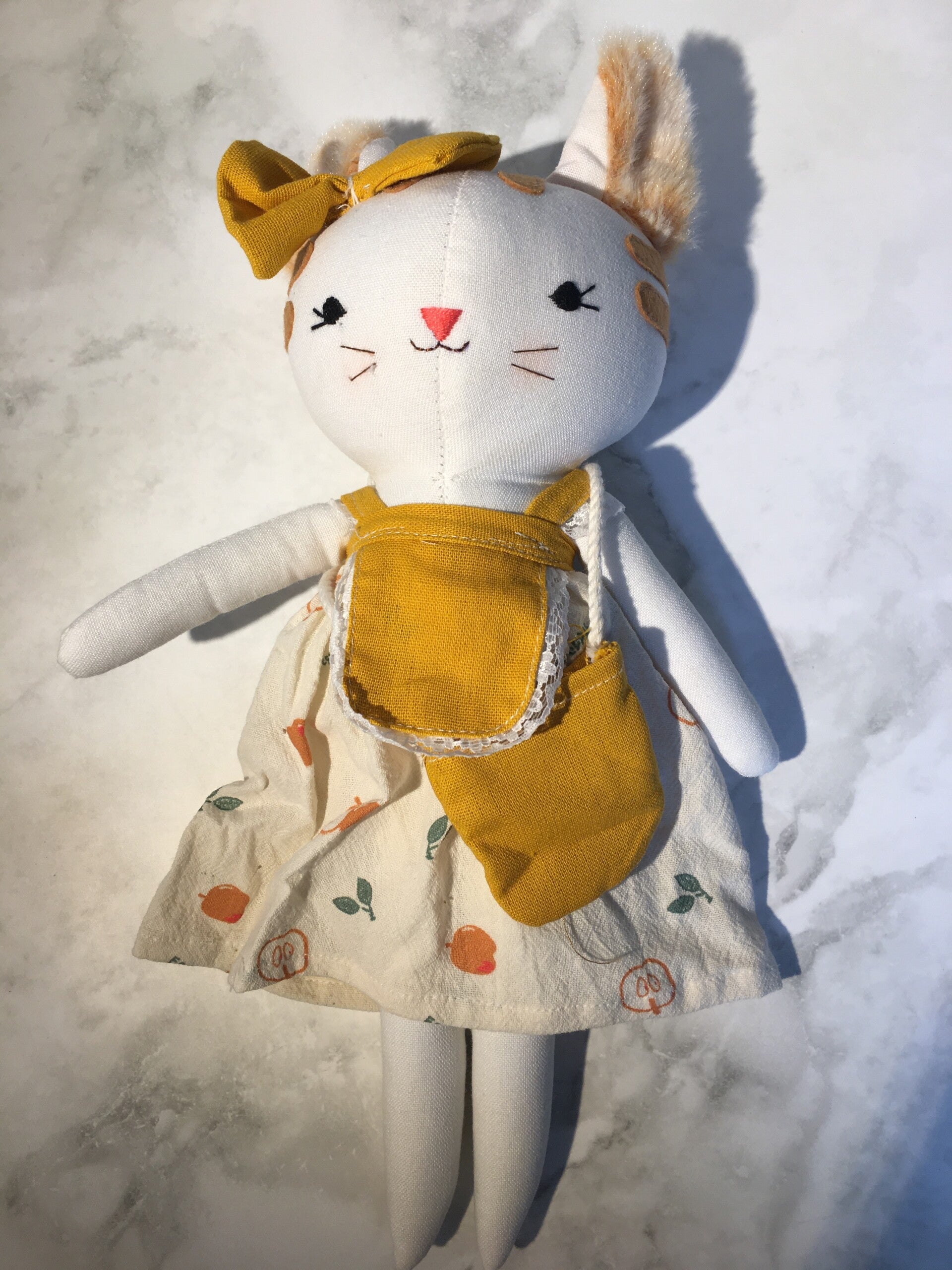 Deze handgemaakte pop is gemaakt van milieuvriendelijke organische linnen stof en gevuld met polyester fiberfill. Alle details zijn zorgvuldig met de hand gemaakt en geborduurd.