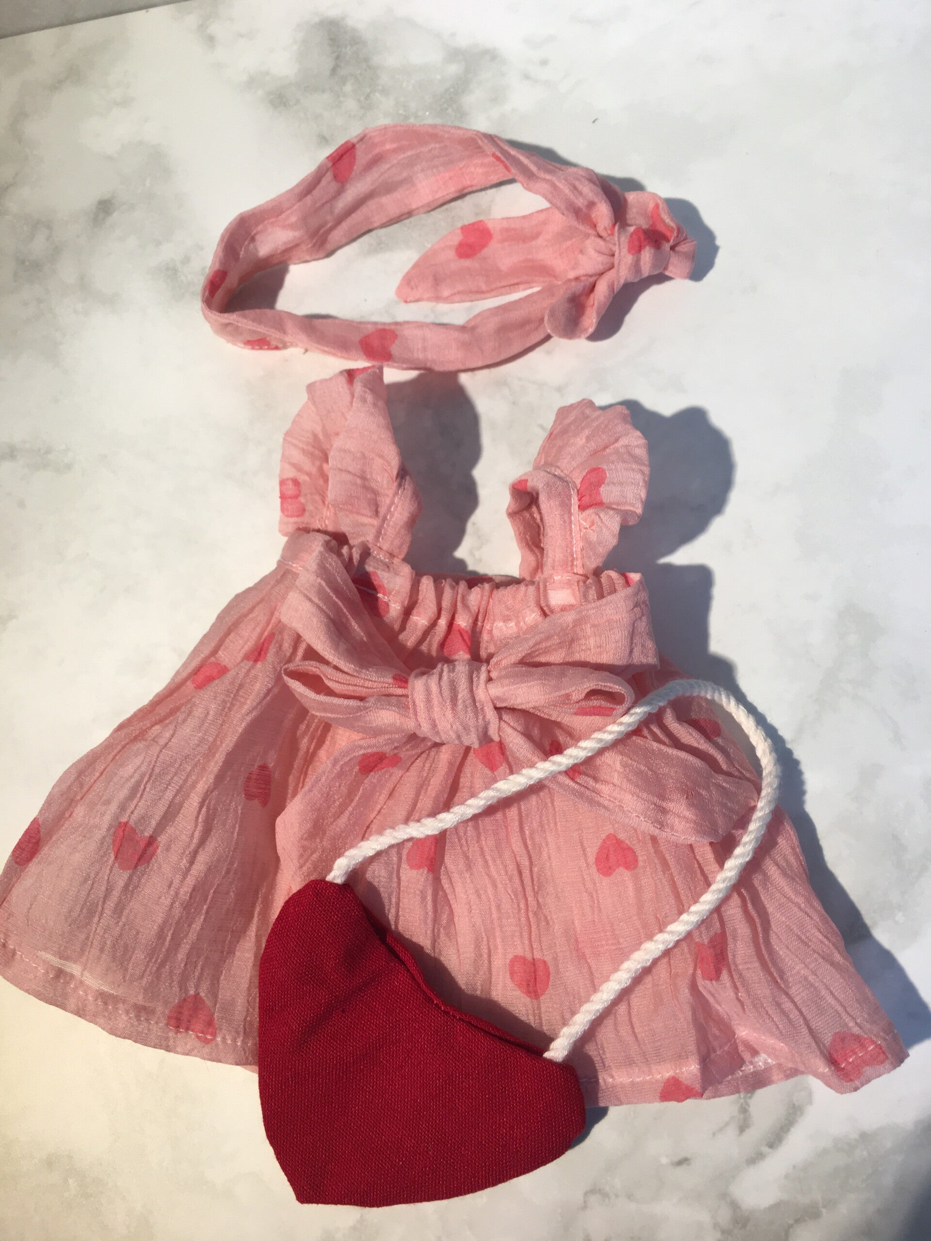 De lappenpop draagt een afneembare prinsessenjurk, dat gemakkelijk uit te trekken is waardoor de pop kan aangekleed worden.