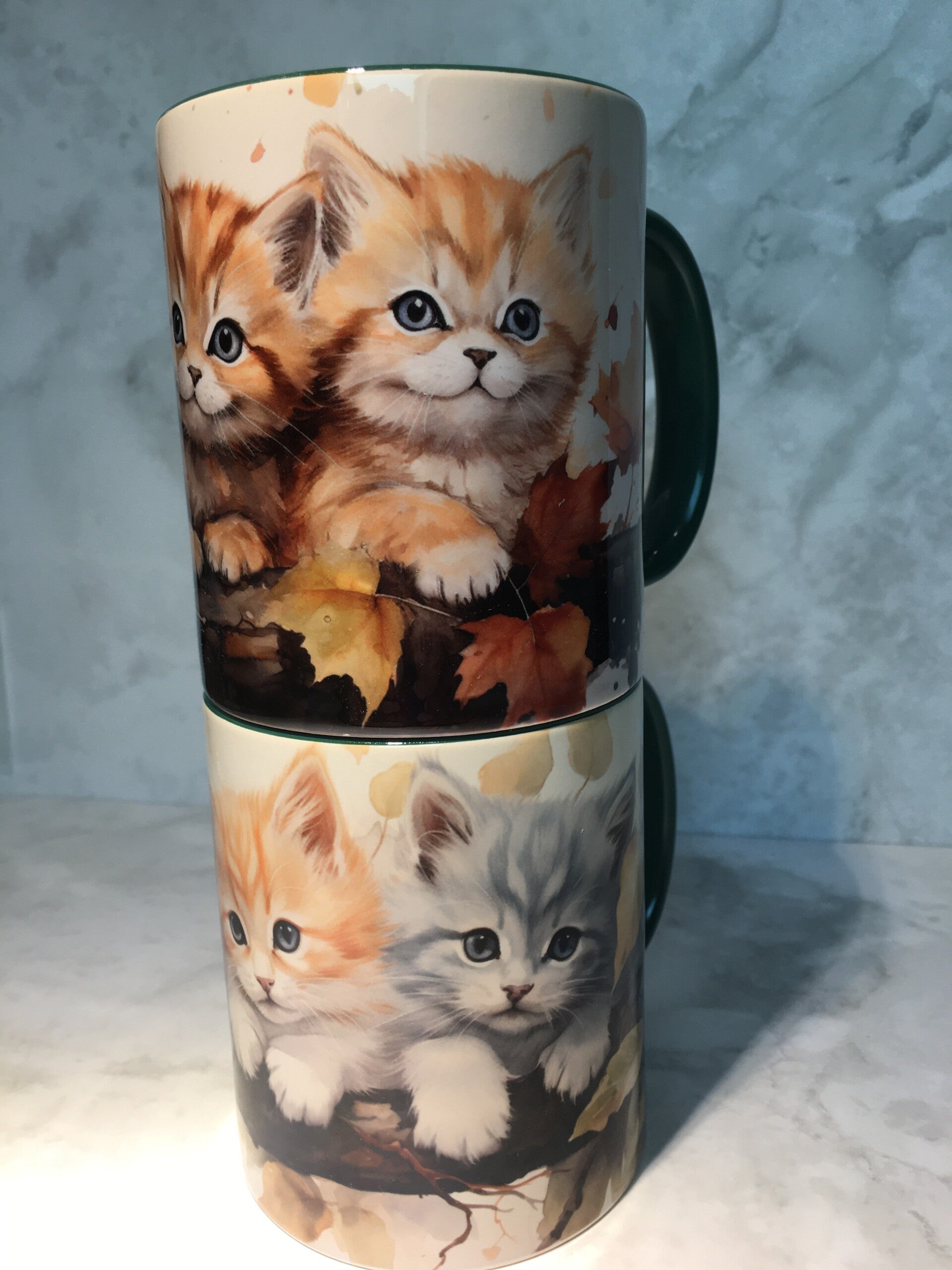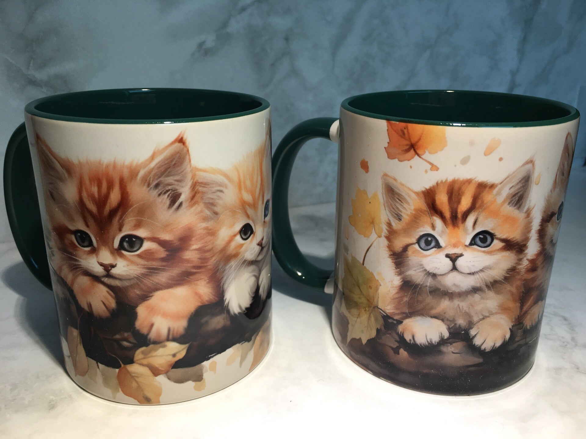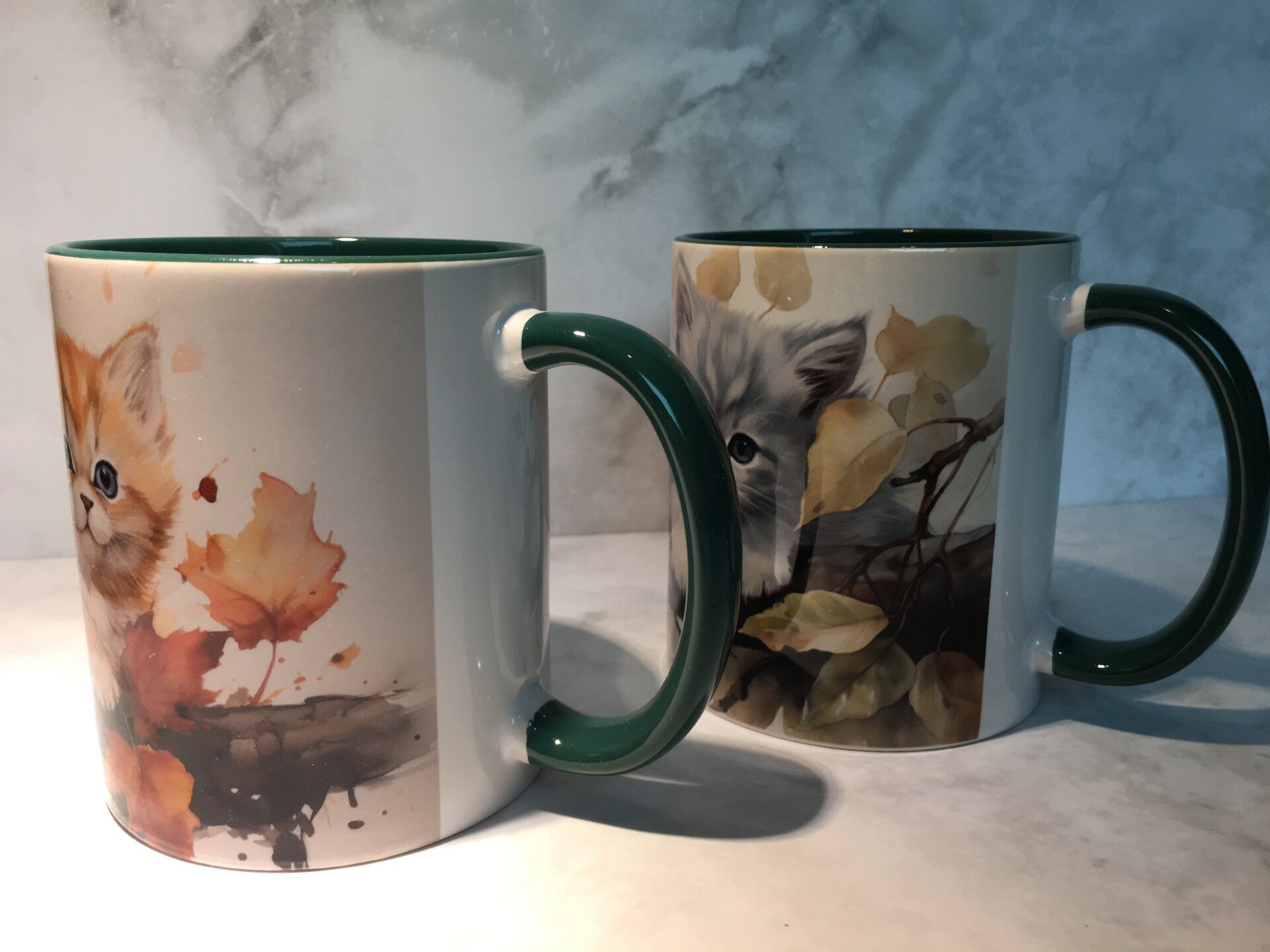 De mok is 360 graden bedrukt met uitzondering van het deel aan de handgreep dat wit is.