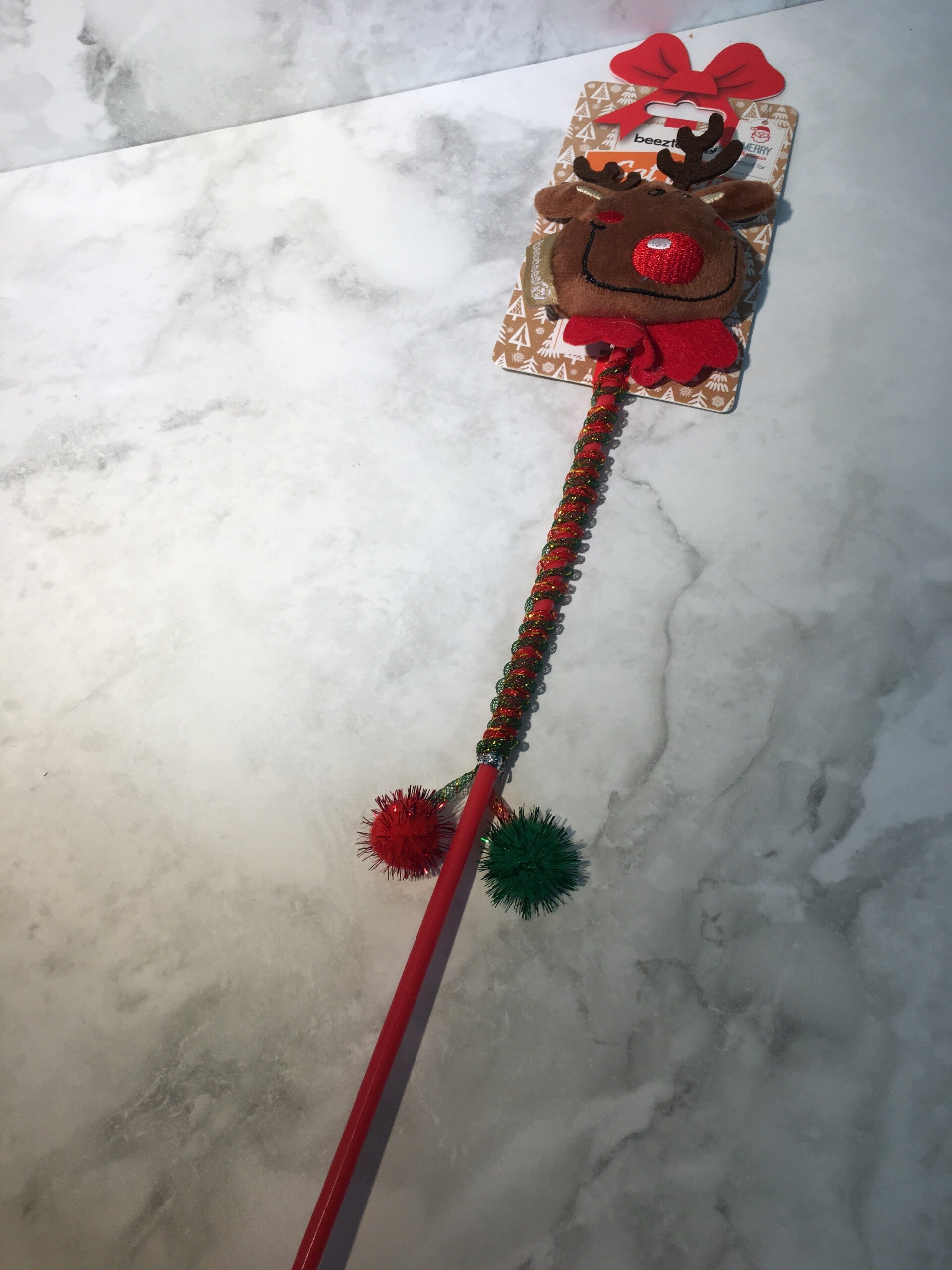 - Eén kattenhengel met kerstversiering om samen met jouw kat leuk te spelen.