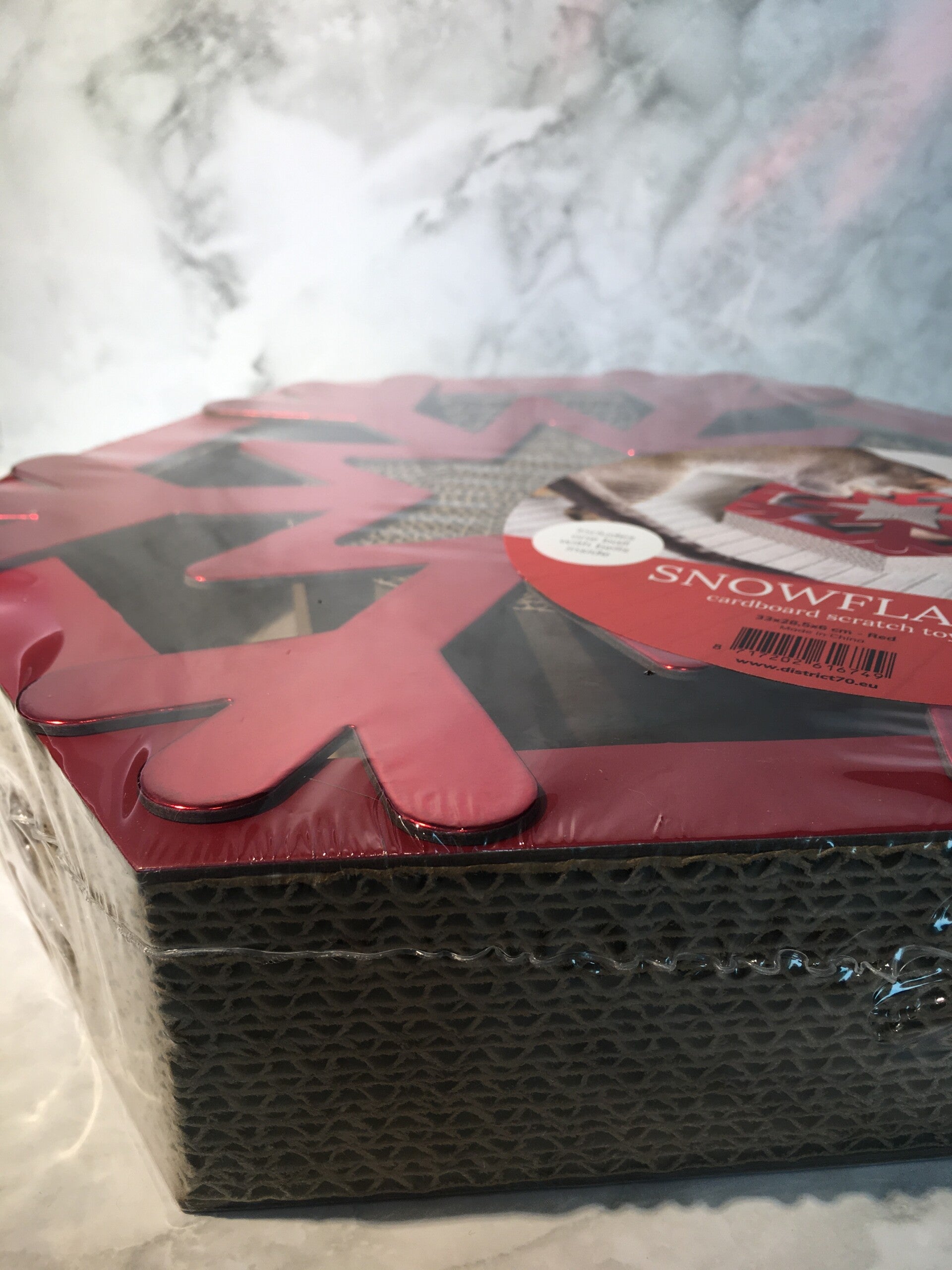 Krabkarton sneeuwvlok rood met kattenhengel zuurstok en 2 kerstmuizen