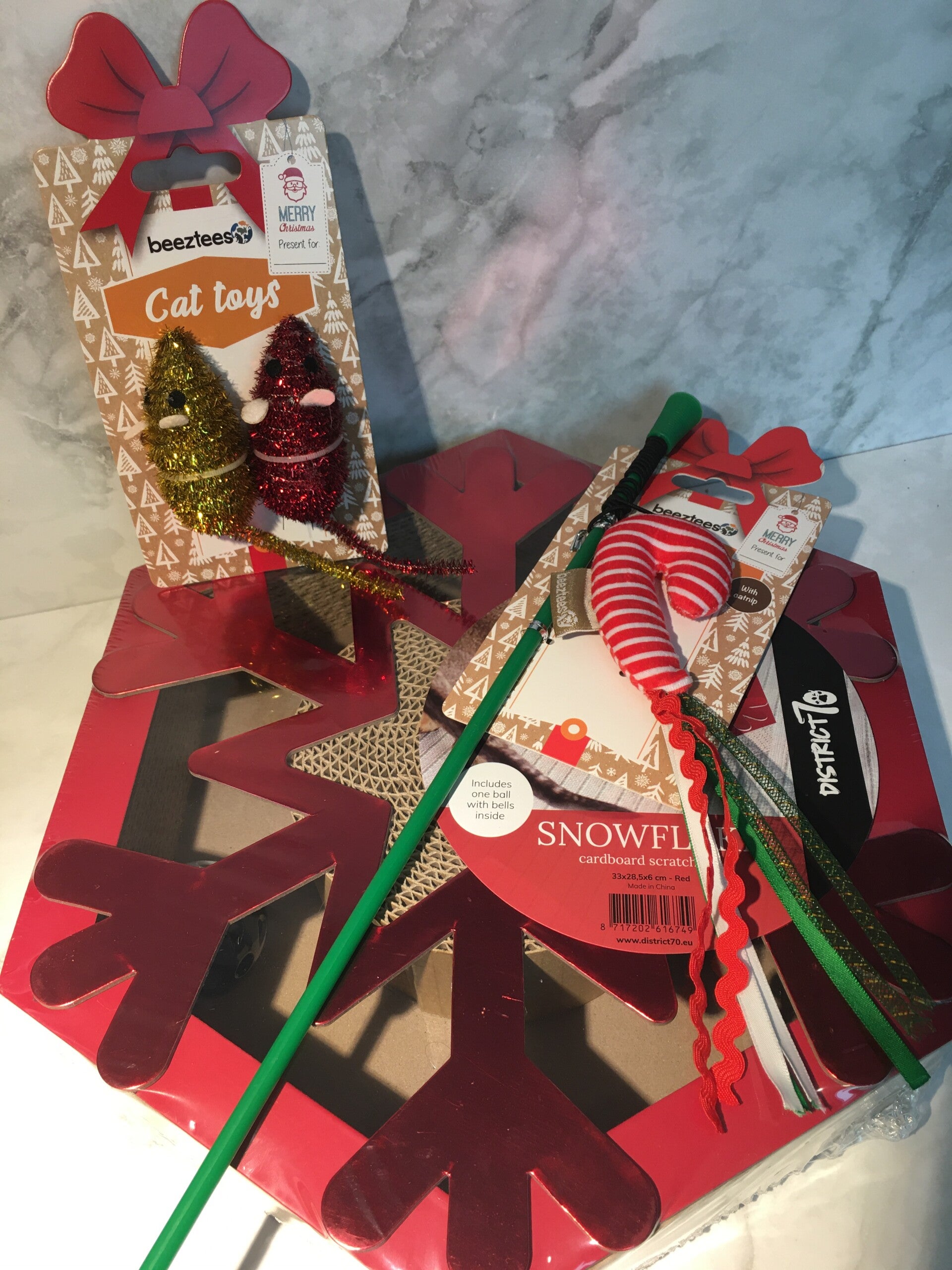 - Eén kattenhengel met kerstversiering om samen met jouw kat leuk te spelen.