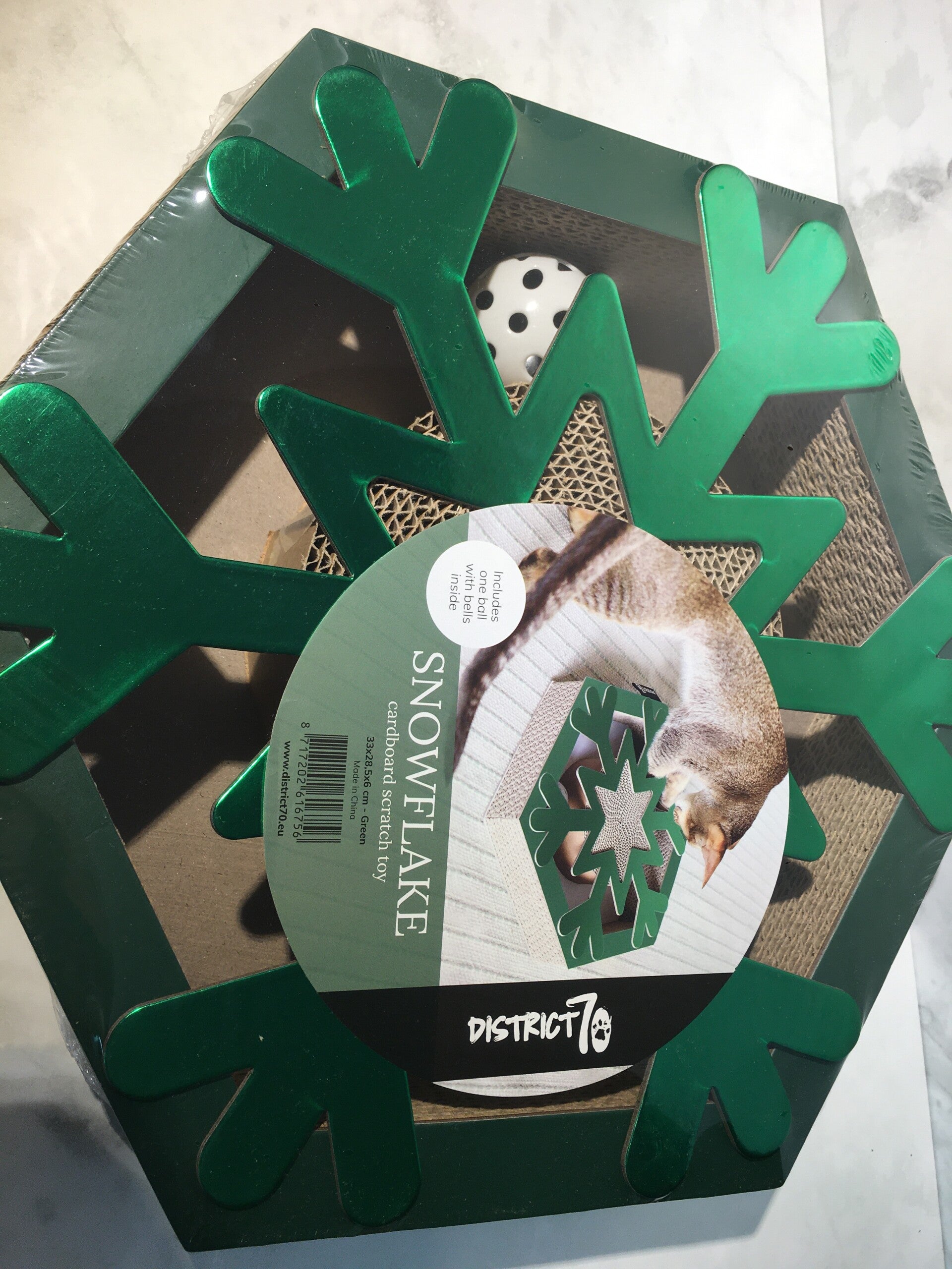 - Eén krabkarton gevuld met balletje met rinkelend belletje om jouw kat te vermaken en haar/zijn nagels te verzorgen.