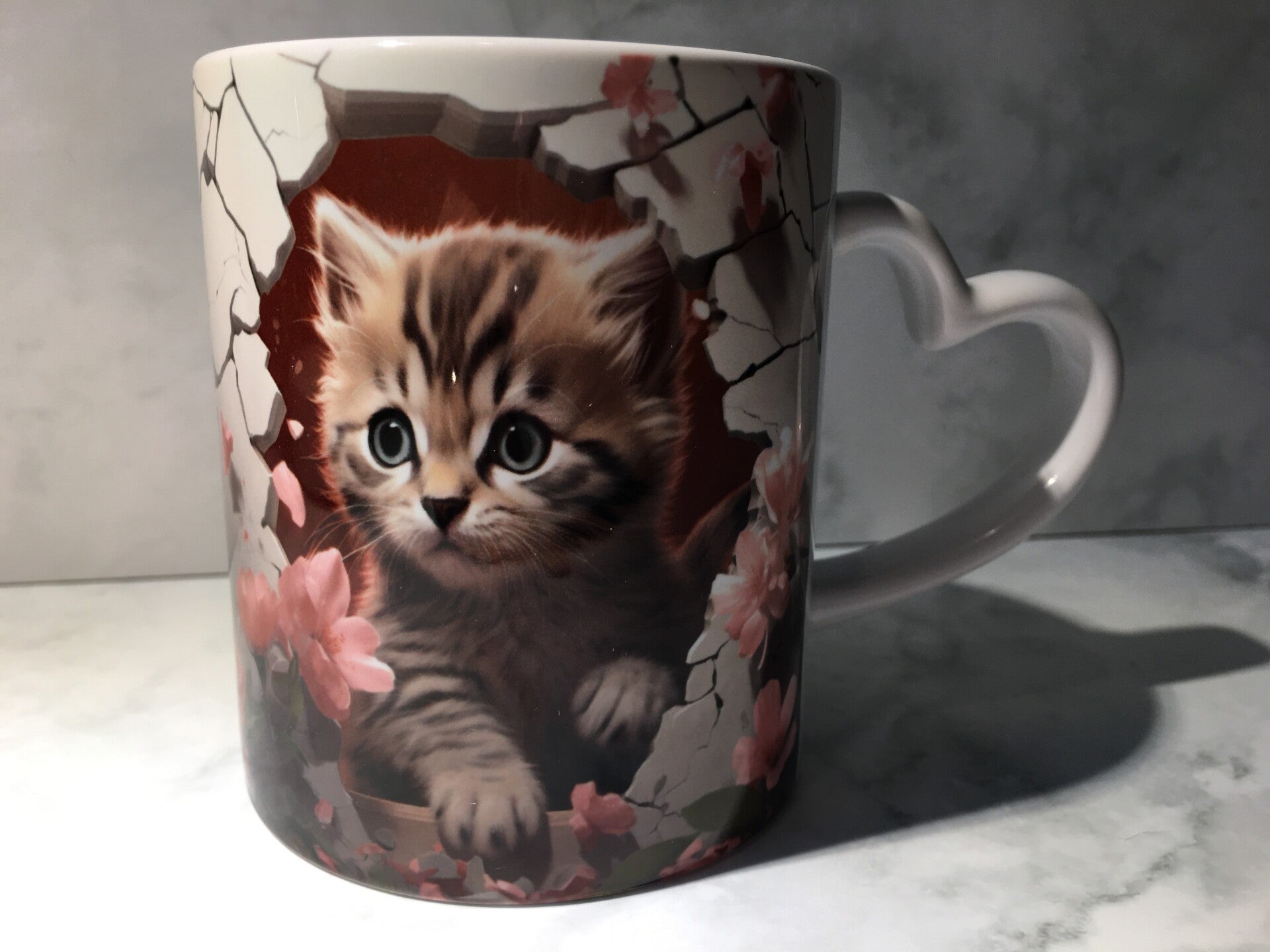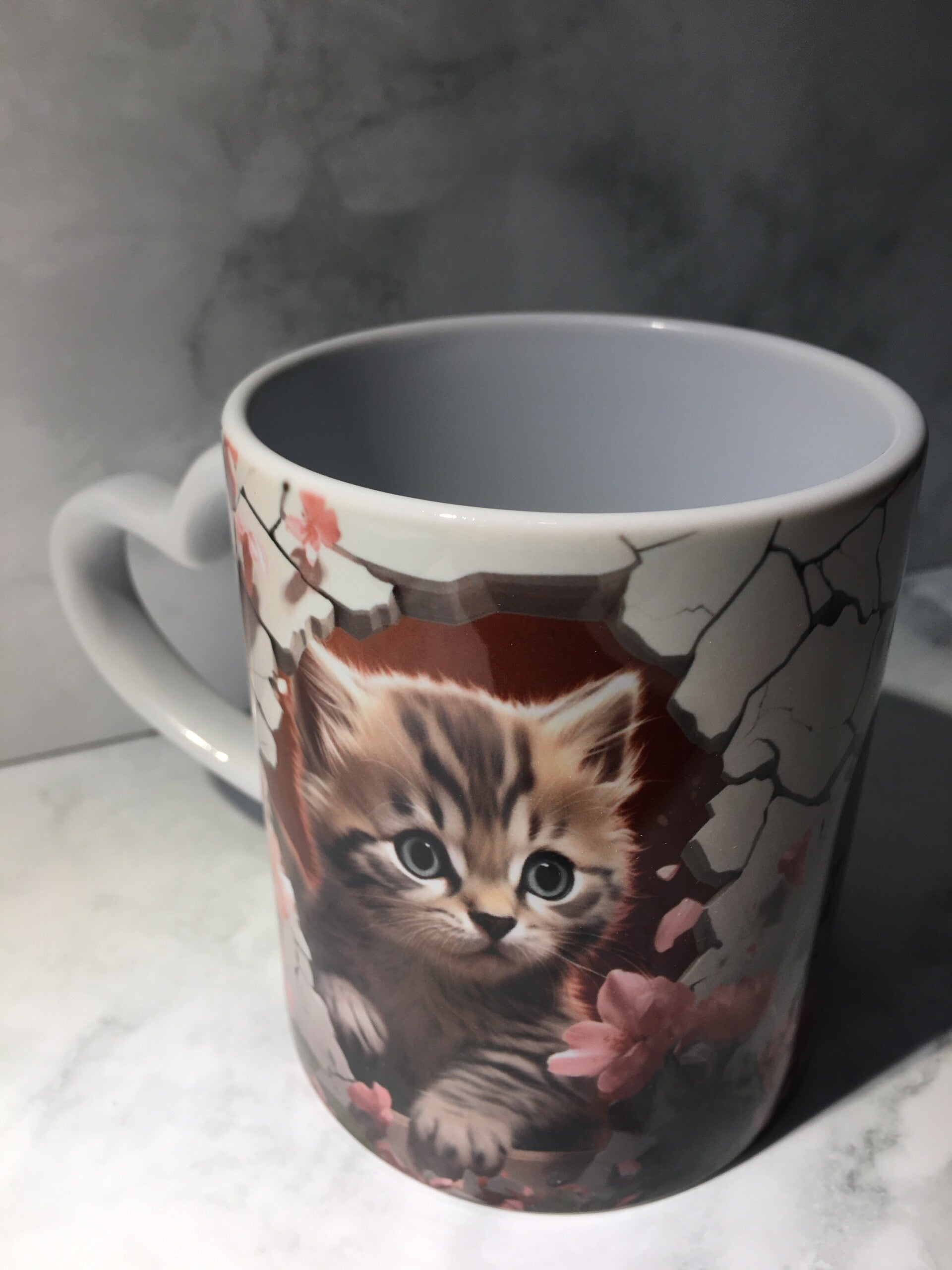 Keramische mok met hartvormige handgreep en prachtige print