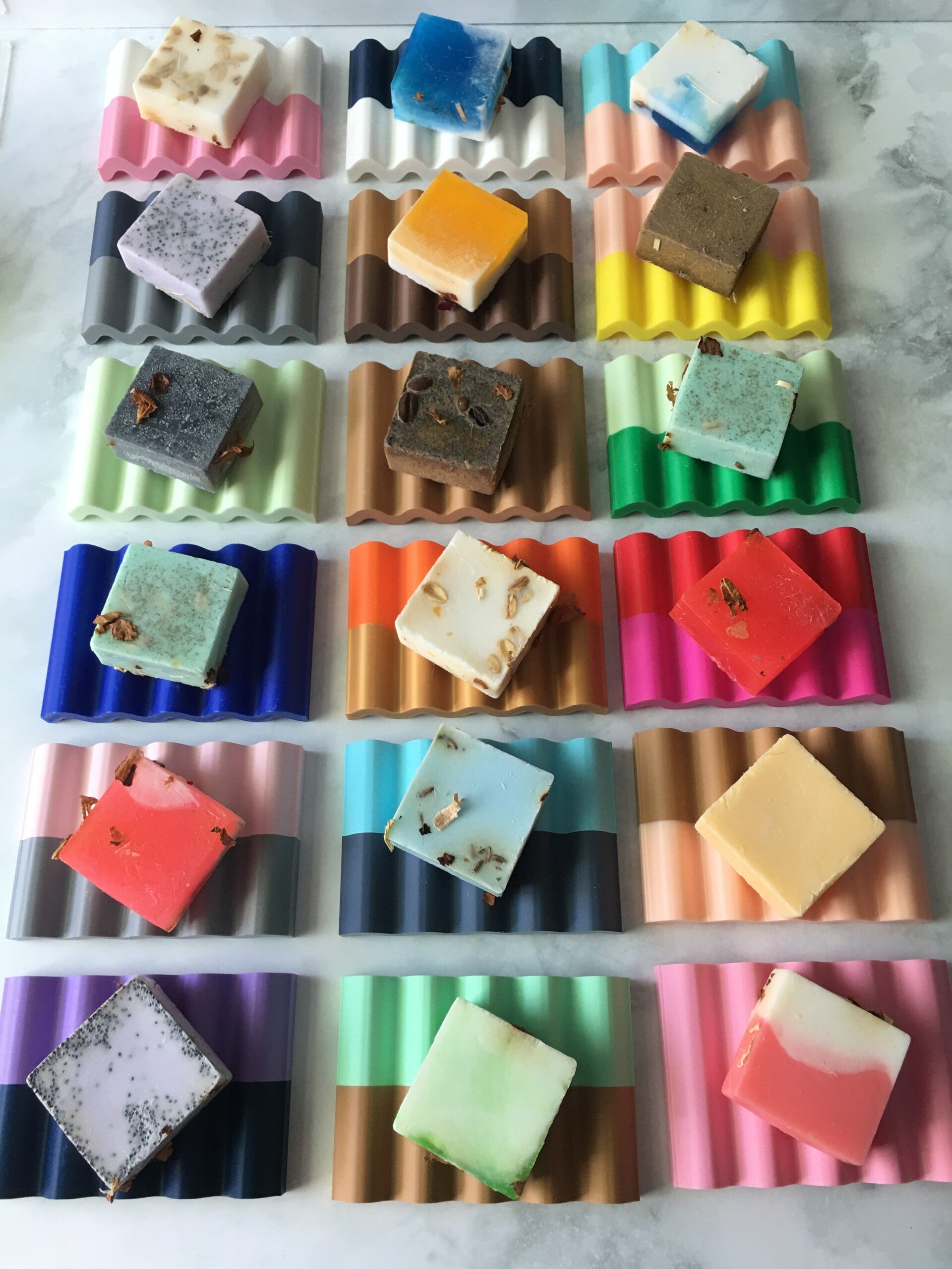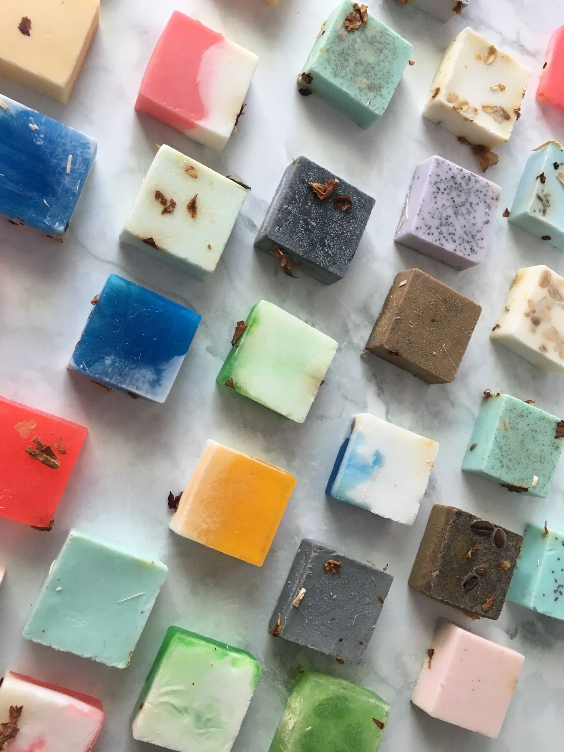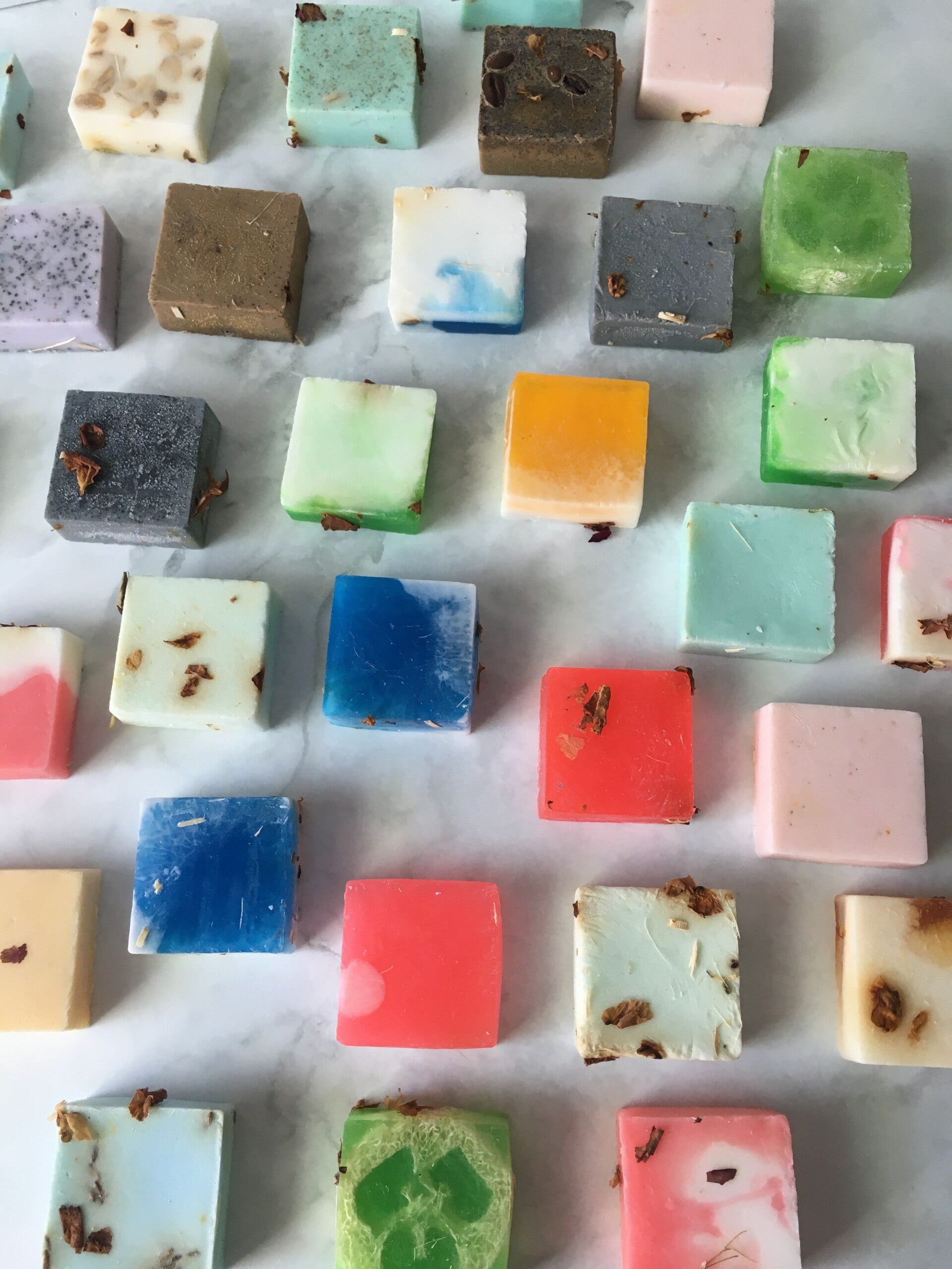 Afmetingen per zeepje: 4 cm x 4 cm x 2 cm.
