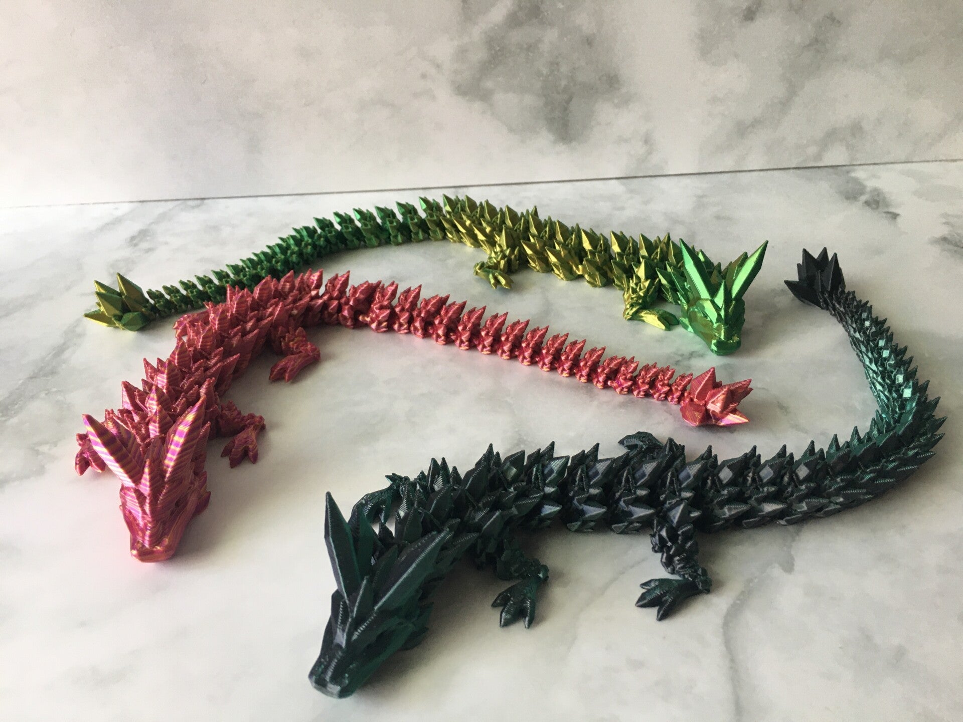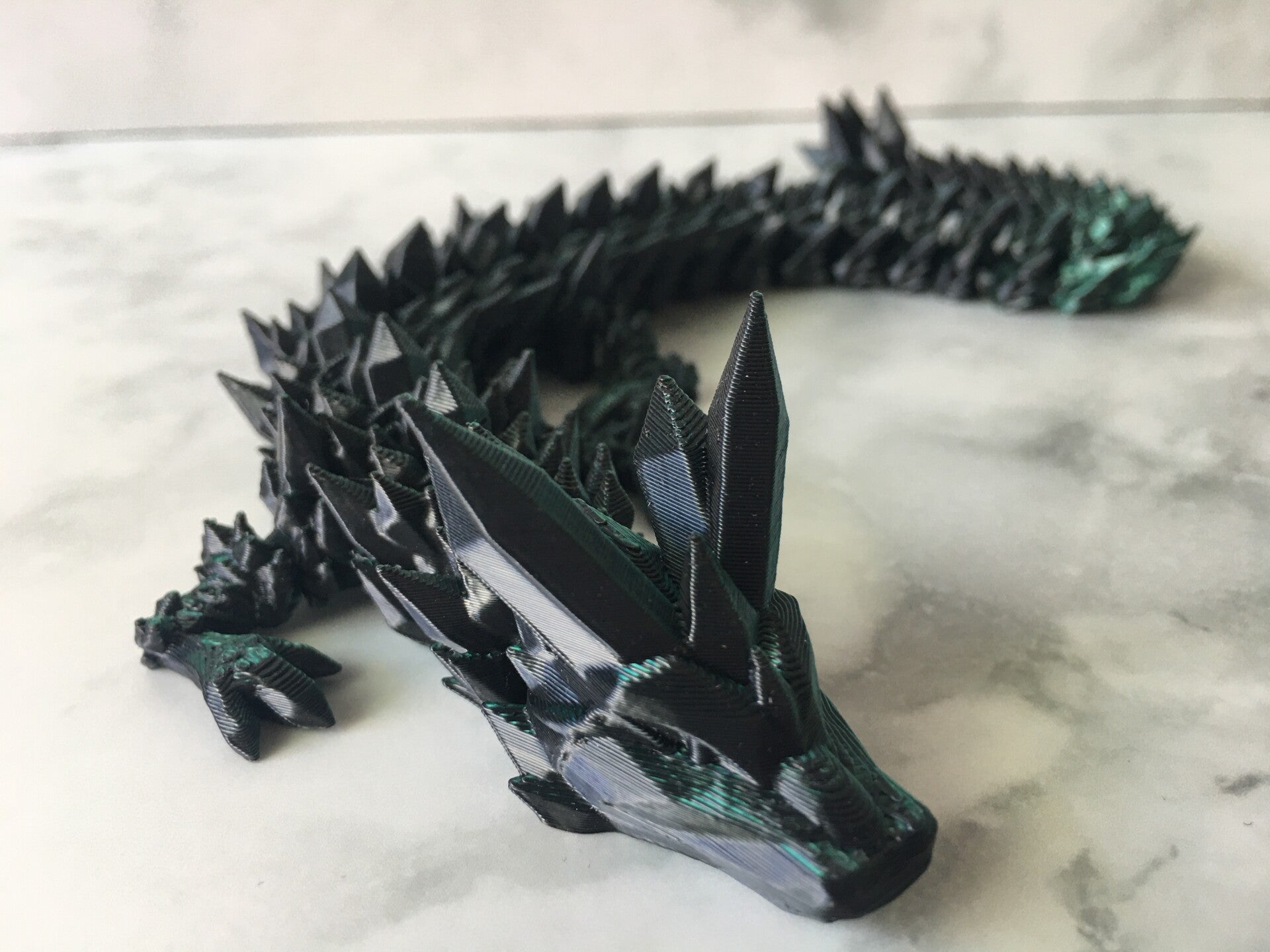 De kristallen draak is 3D-geprint uit biologisch afbreekbaar PLA.