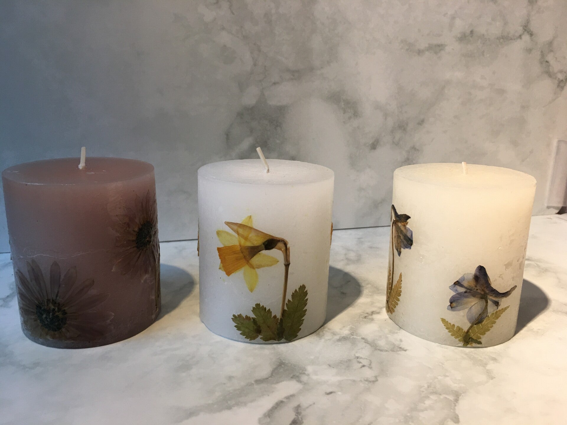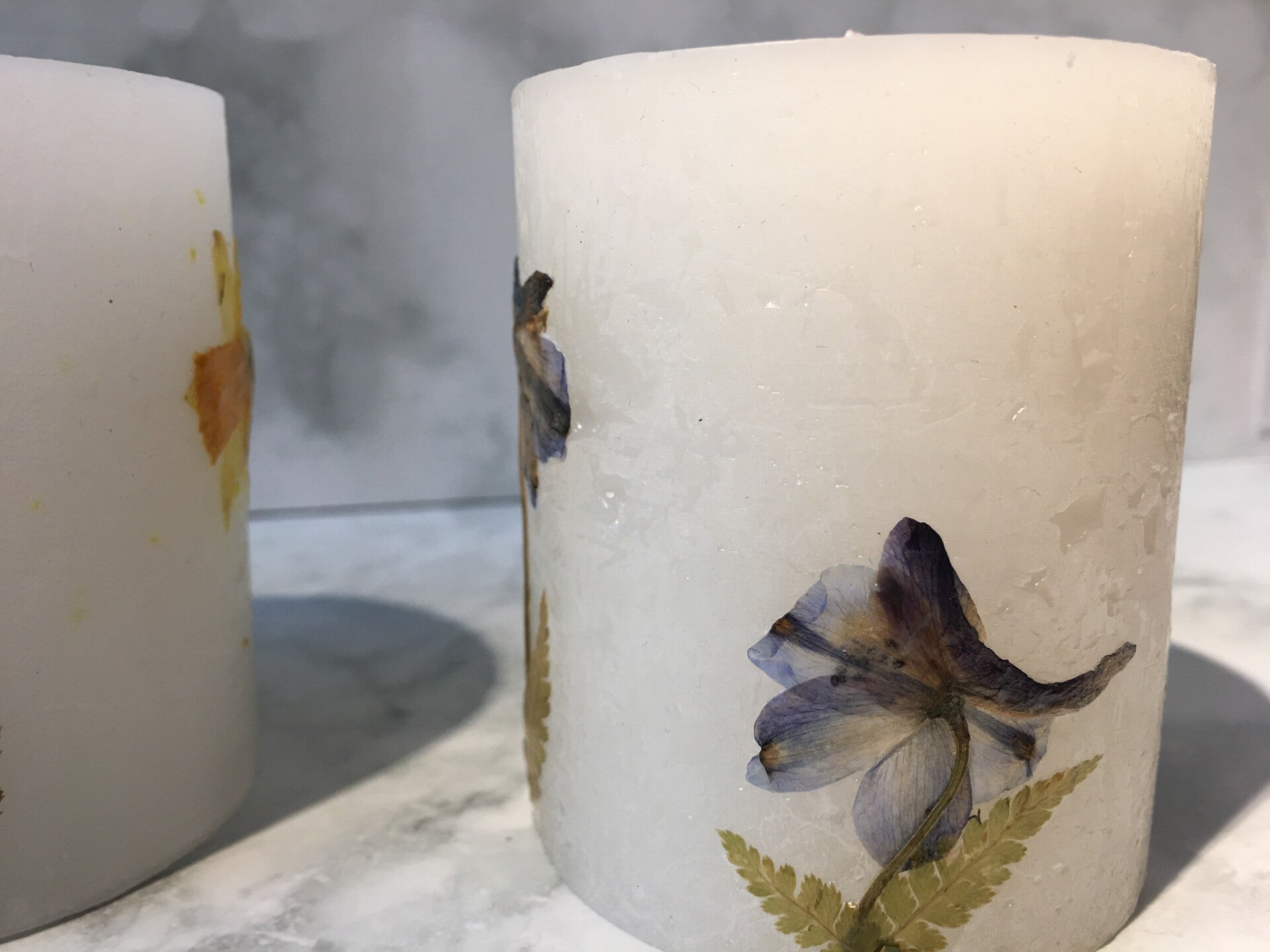 Botanische pilaarkaars met ECHTE geperste bloemen