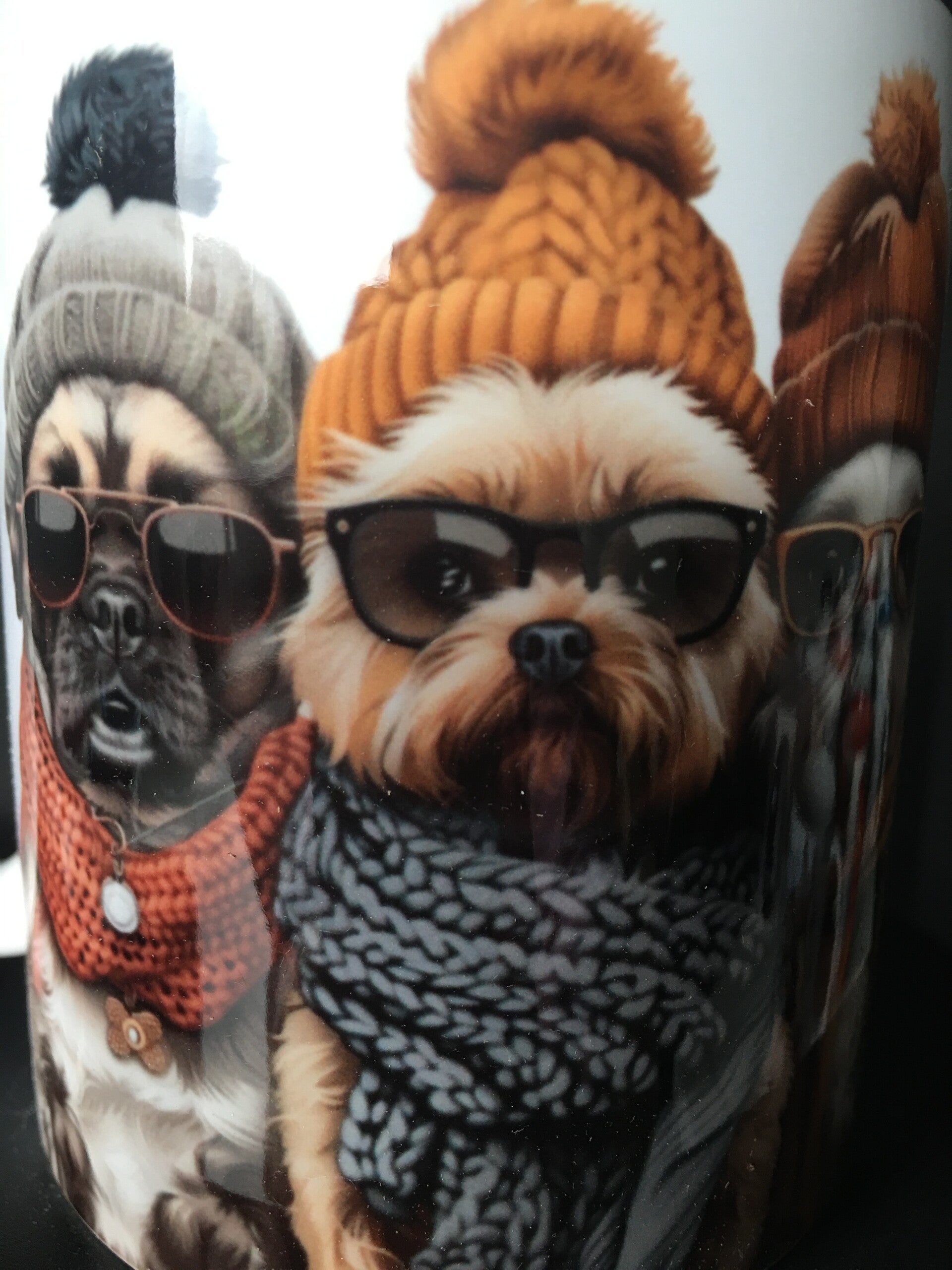 De mok is 360 graden bedrukt met uitzondering van het deel aan de handgreep dat wit is.