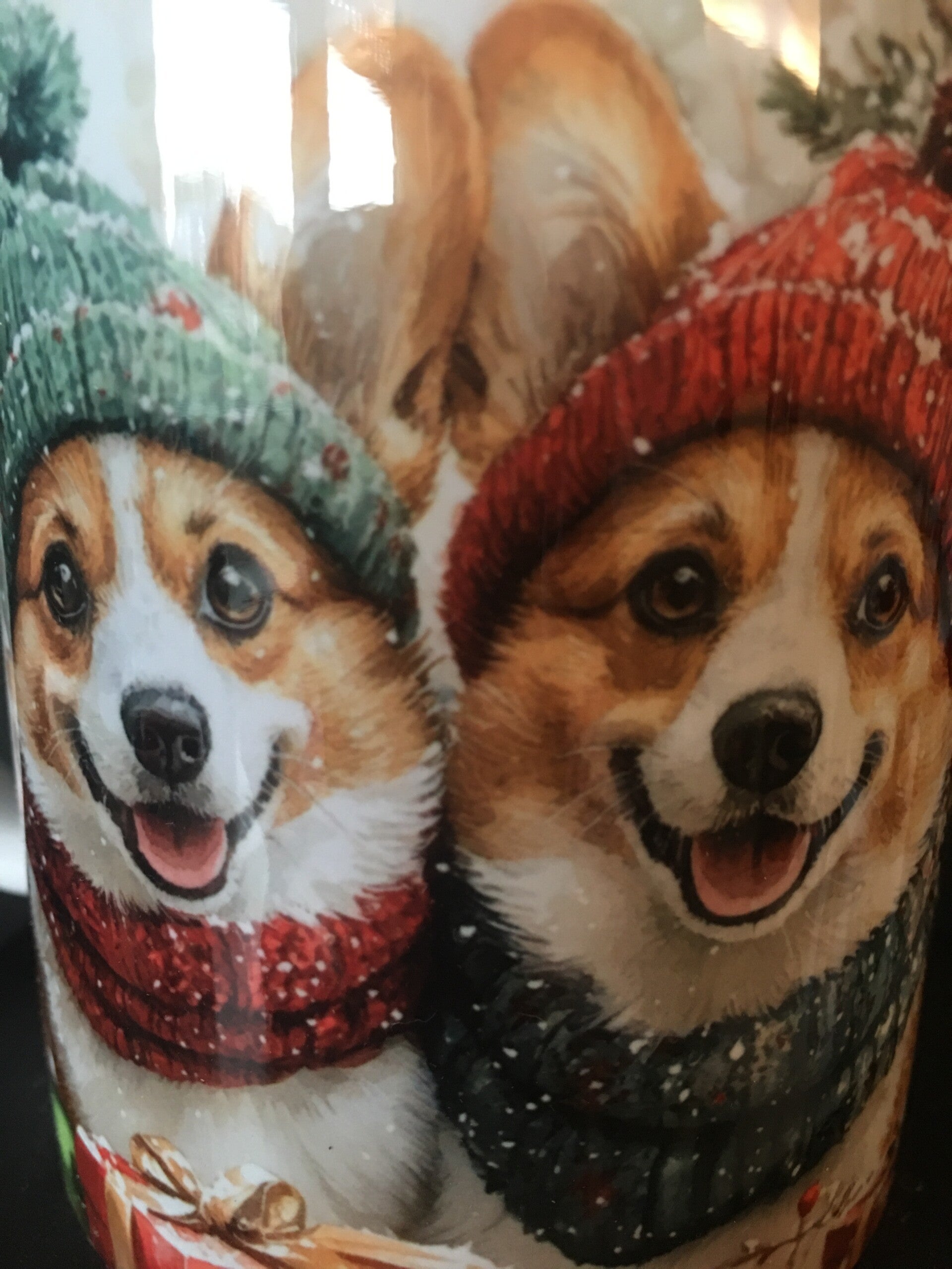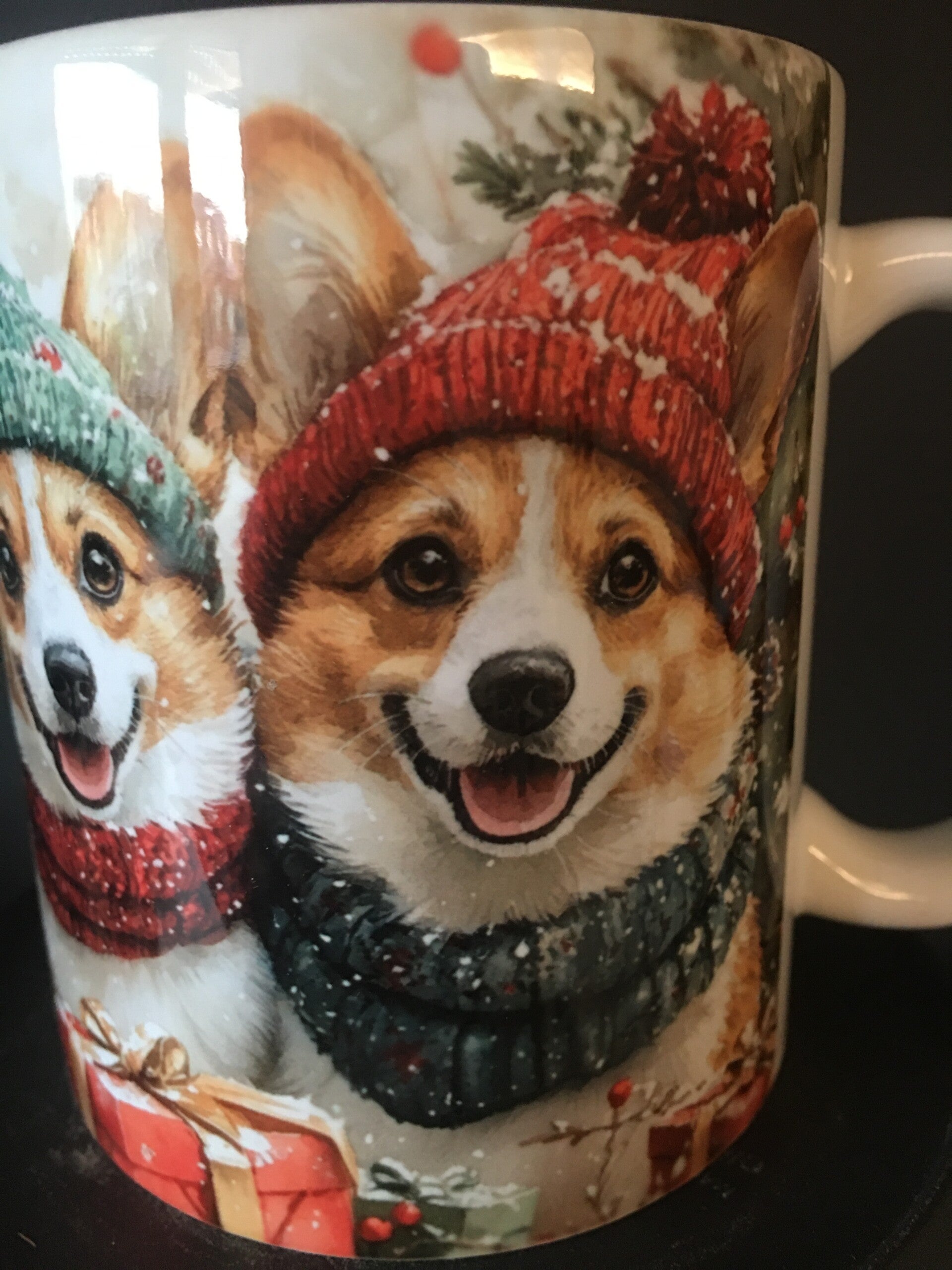 De mok is 360 graden bedrukt met uitzondering van het deel aan de handgreep dat wit is.