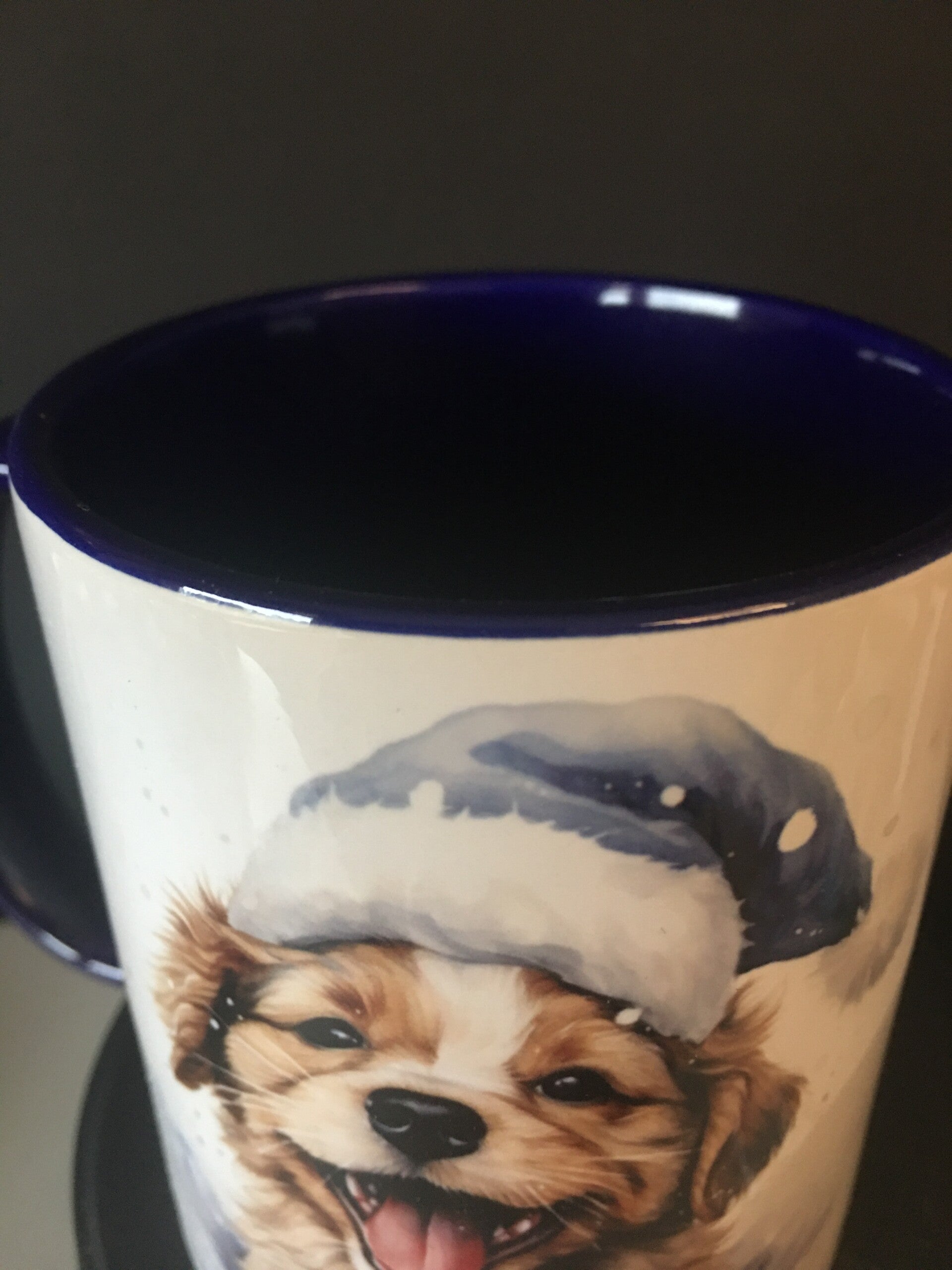 Mok puppy met blauwe kerstmuts