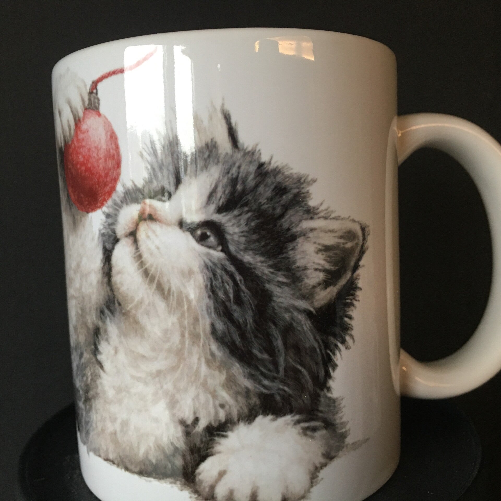 De mok is 360 graden bedrukt met uitzondering van het deel aan de handgreep dat wit is.