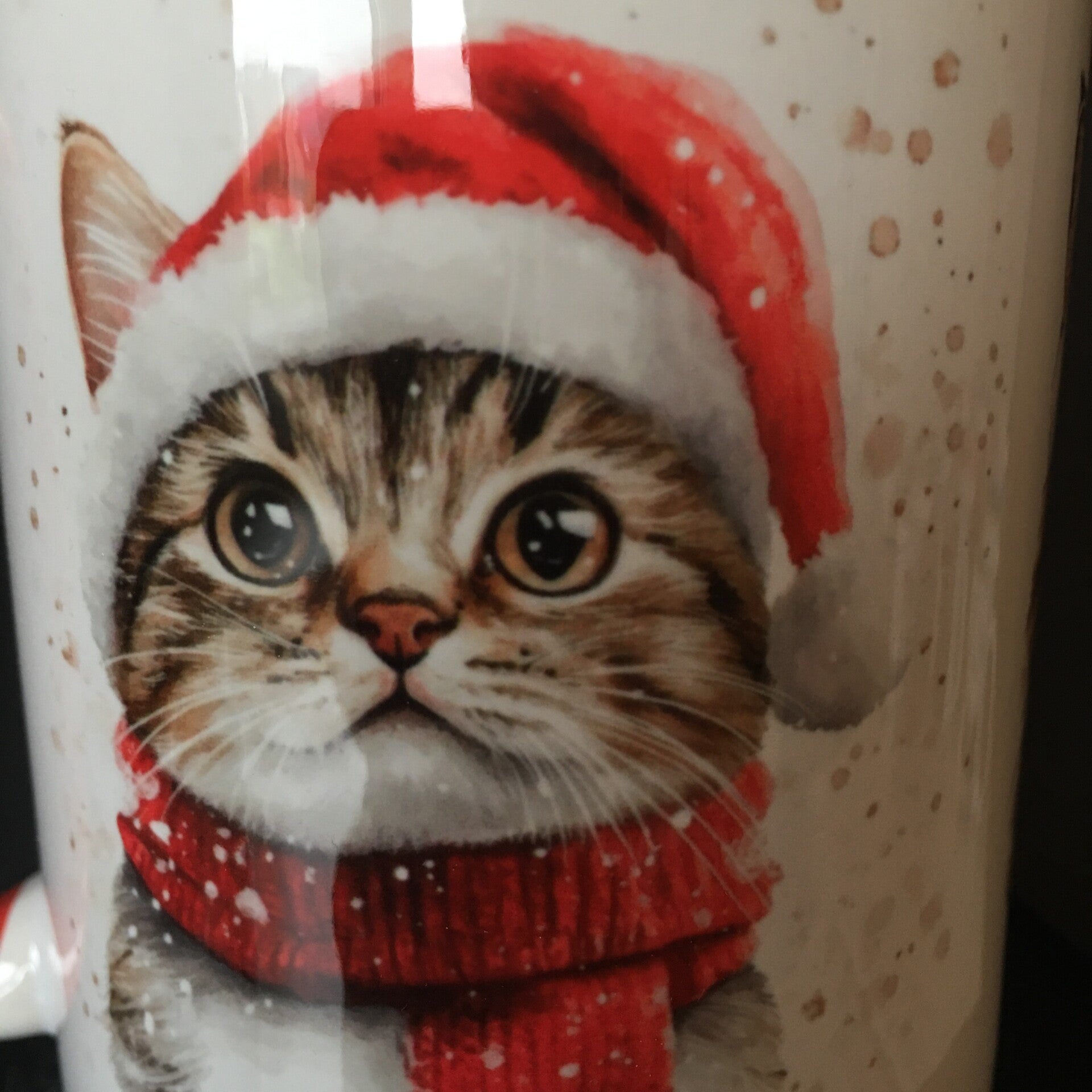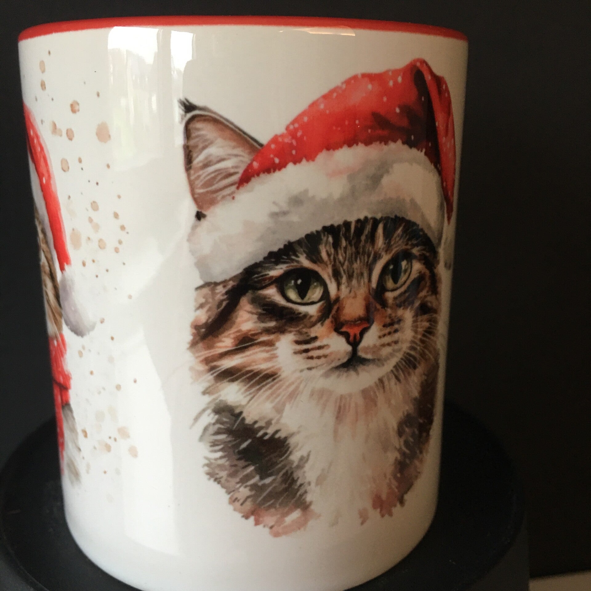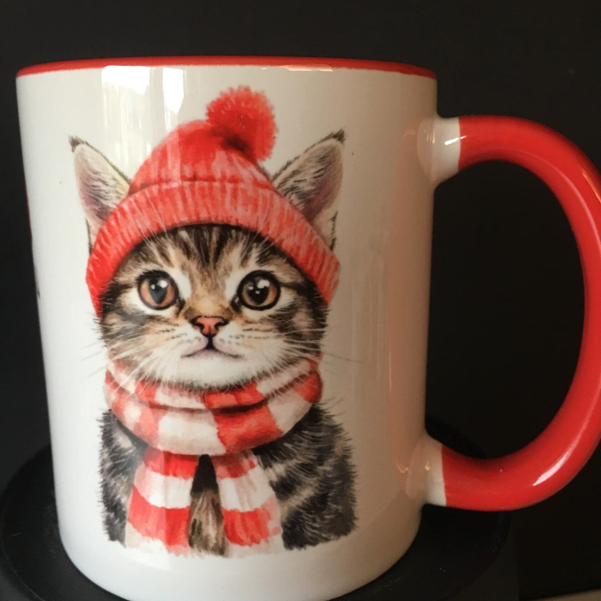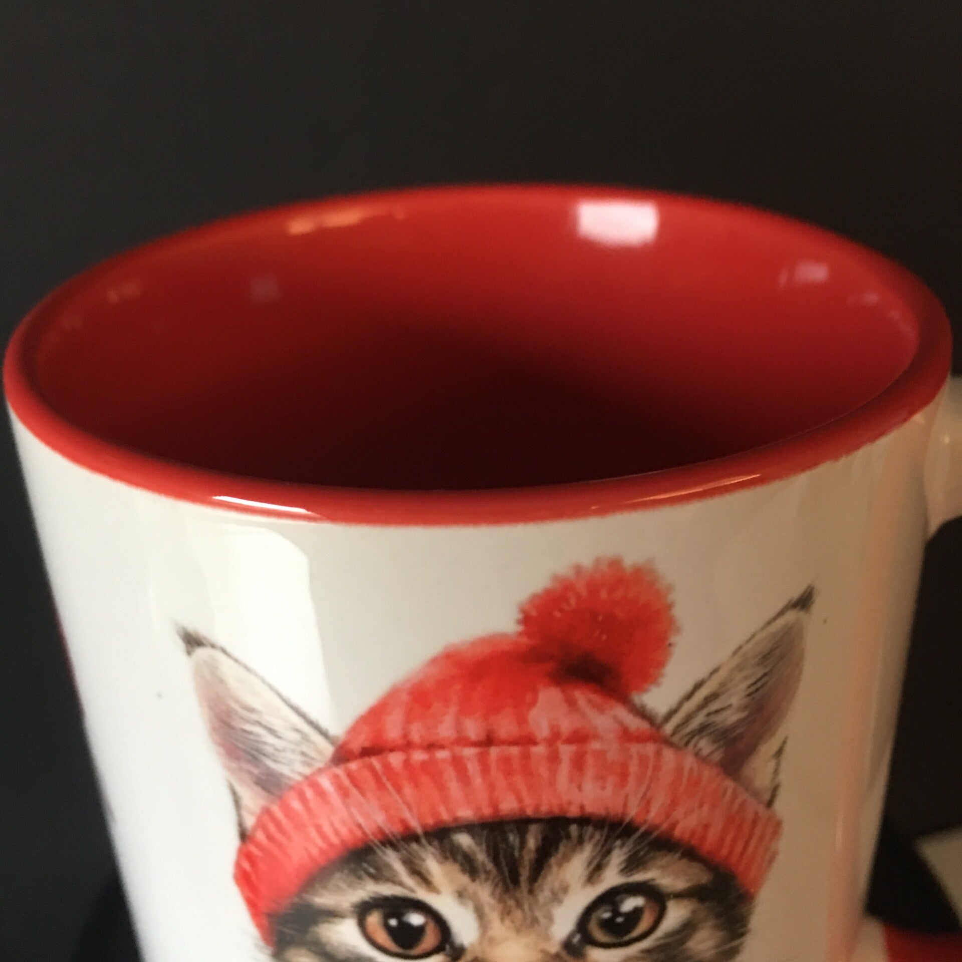 De mok is 360 graden bedrukt met uitzondering van het deel aan de handgreep dat wit is.
