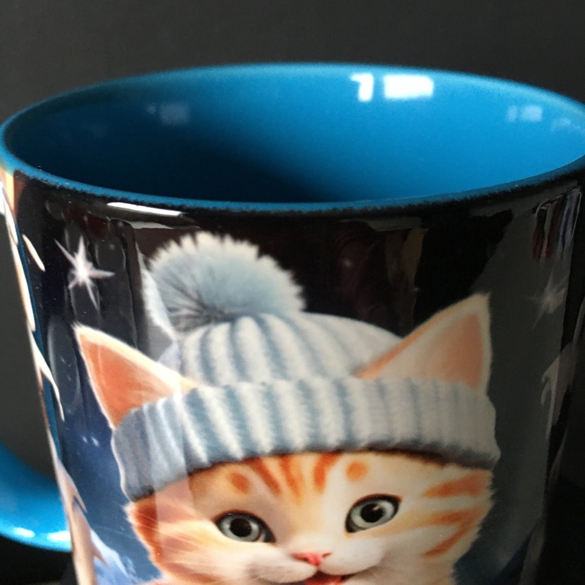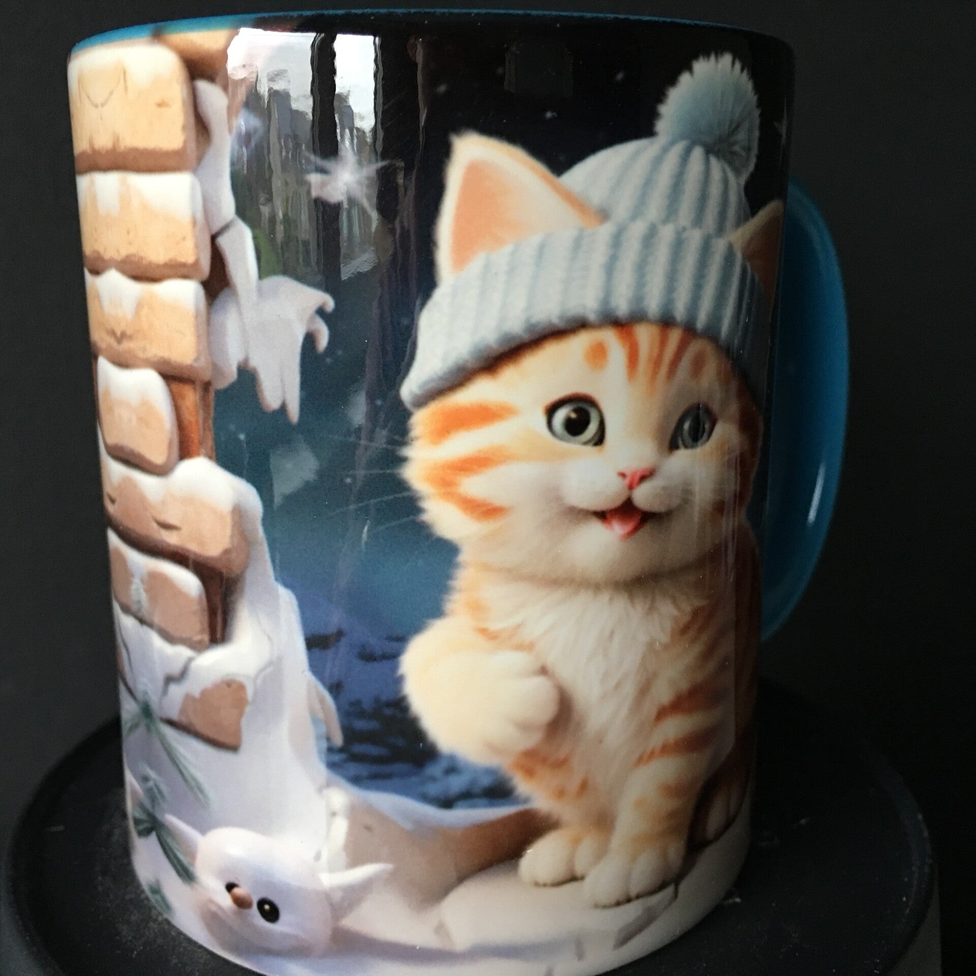 Mok vosje met blauwe muts