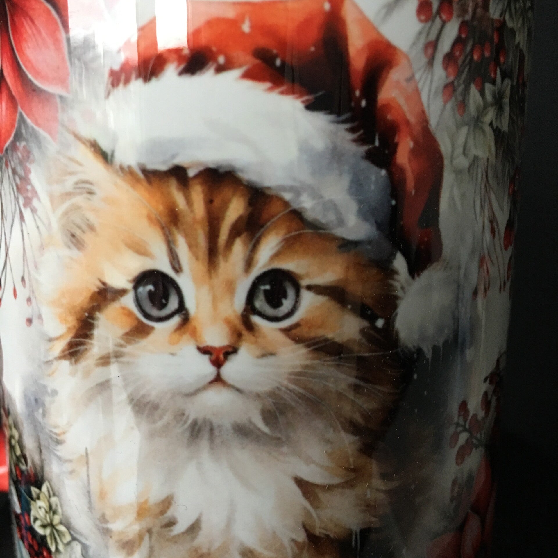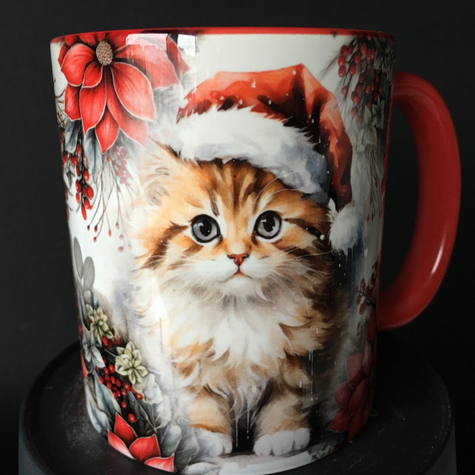De mok is 360 graden bedrukt met uitzondering van het deel aan de handgreep dat wit is.